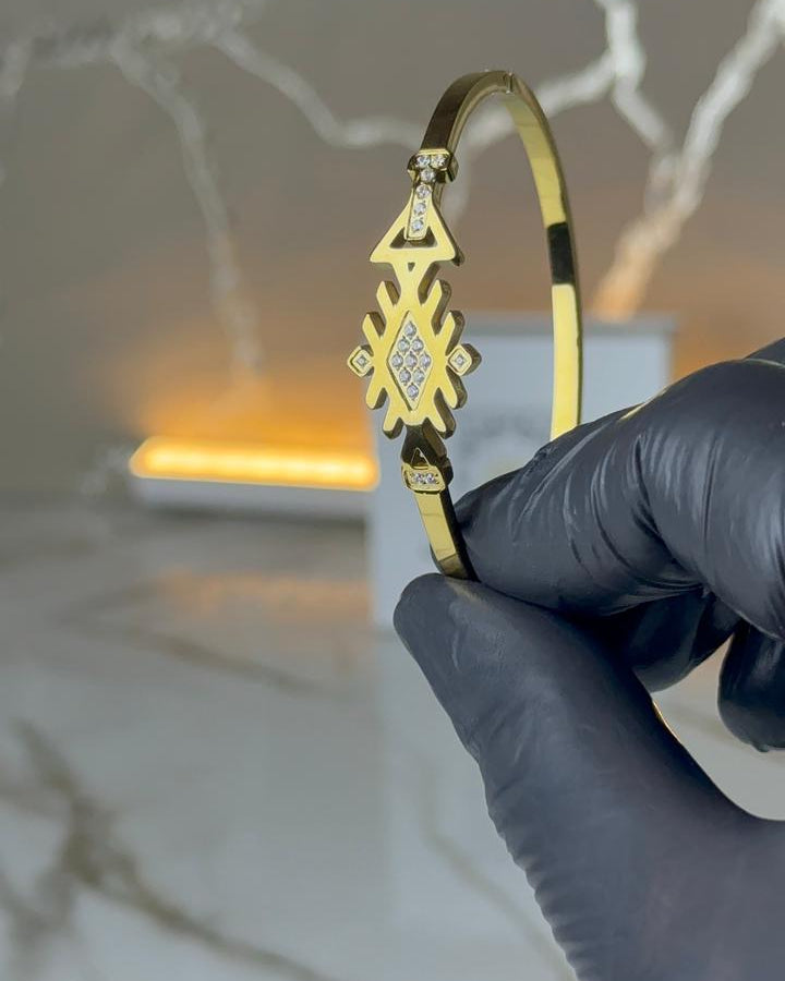 l'accessoire parfait pour chaque femme active. En portant ce bracelet délicat en acier inoxydable doré 18K et ses cristaux scintillants, votre main brille d’élégance, ajoutant une touche de luxe subtil à vos journées de travail.